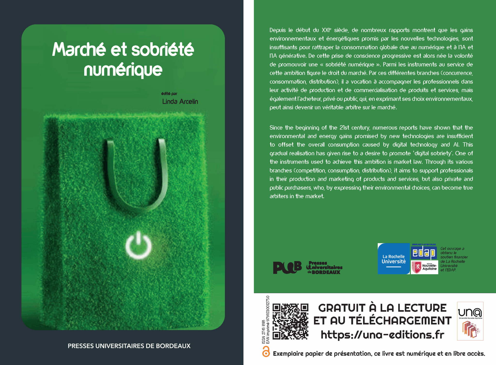 Arcelin, Linda, éd., Marché et sobriété numérique, Presses universitaires de Bordeaux, collection PrimaLun@ 39, Pessac, 2026, [URL] https://una-editions.fr/marche-et-sobriete-numerique