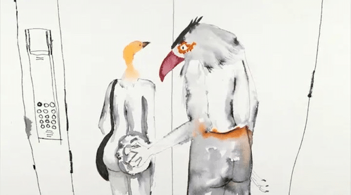 Dans le court-métrage El after del Mundo, c’est la thématique de la fin du monde qui est proposée tout en racontant l’histoire d’une rencontre entre deux personnages seuls survivants de l’humanité sur une île. Le récit circulaire est fondé sur les micro-événements. Et le film met en scène la re-création d’une forme de convivialité par la récupération d’objets marins, à l’image de la carcasse de baleine devenant un refuge pour une ultime tempête le temps d’une dernière playlist. On peut souligner le rôle de l’esthétique de l’hyper-modernité, rappelant le graphisme de la bande dessinée ou le clip vidéo. Les couleurs vives contrastent fortement avec la noirceur du destin des personnages et l’univers post-apocalyptique. Les personnages se caractérisent par leur immatérialité et l’absence de visage, comme de fantômes errants, chacun ayant un objectif différent : l’une veut sauver la carcasse de la baleine et l’autre cherche désespérément une connexion wifi pour télécharger de nouveaux morceaux de musique afin de mieux passer le temps. La musique, intra et extra diégétique, joue les émotions des personnages. La playlist jouée tout au long du film participe à la construction d’une forme de convivialité entre les personnages.